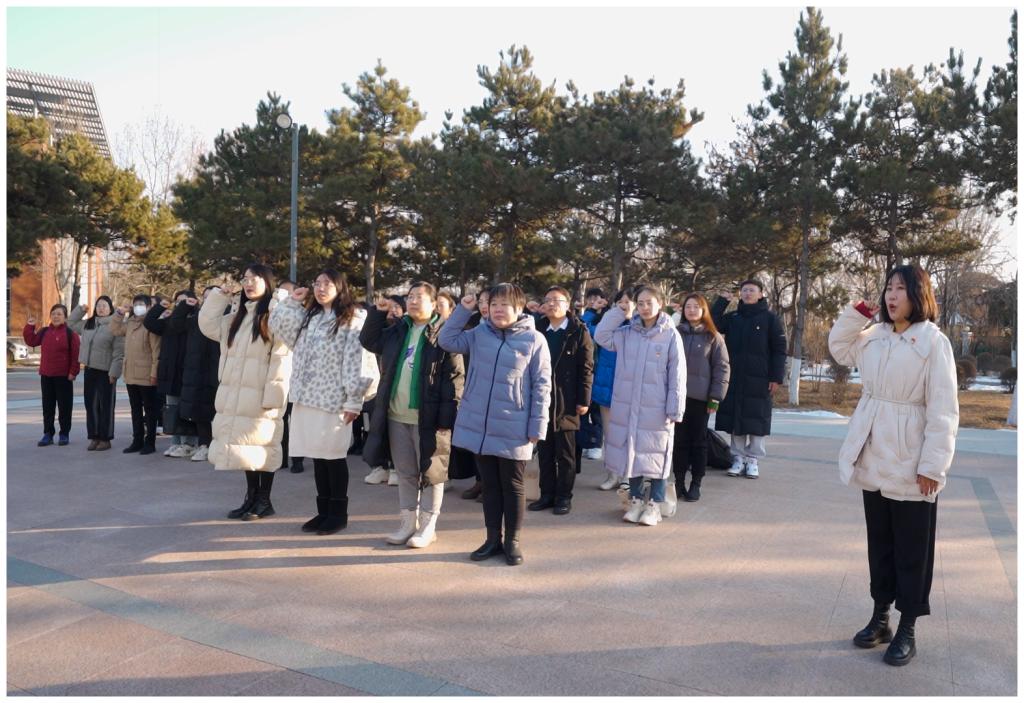 到达市委党校后,首先进行了王立红、孟文静、王伶月、郭亚芳4位新党员的入党仪式,在李大钊广场上面对鲜红党旗庄严宣誓,其他党员同志重温入党誓词;随后在党校讲解员带领下对秦皇岛党员组织生活馆进行了参观学习;最后公司党委书记郭立昌以《习近平文化思想的意义、特征、内涵》为题给全体思政课教师讲授专题党课。